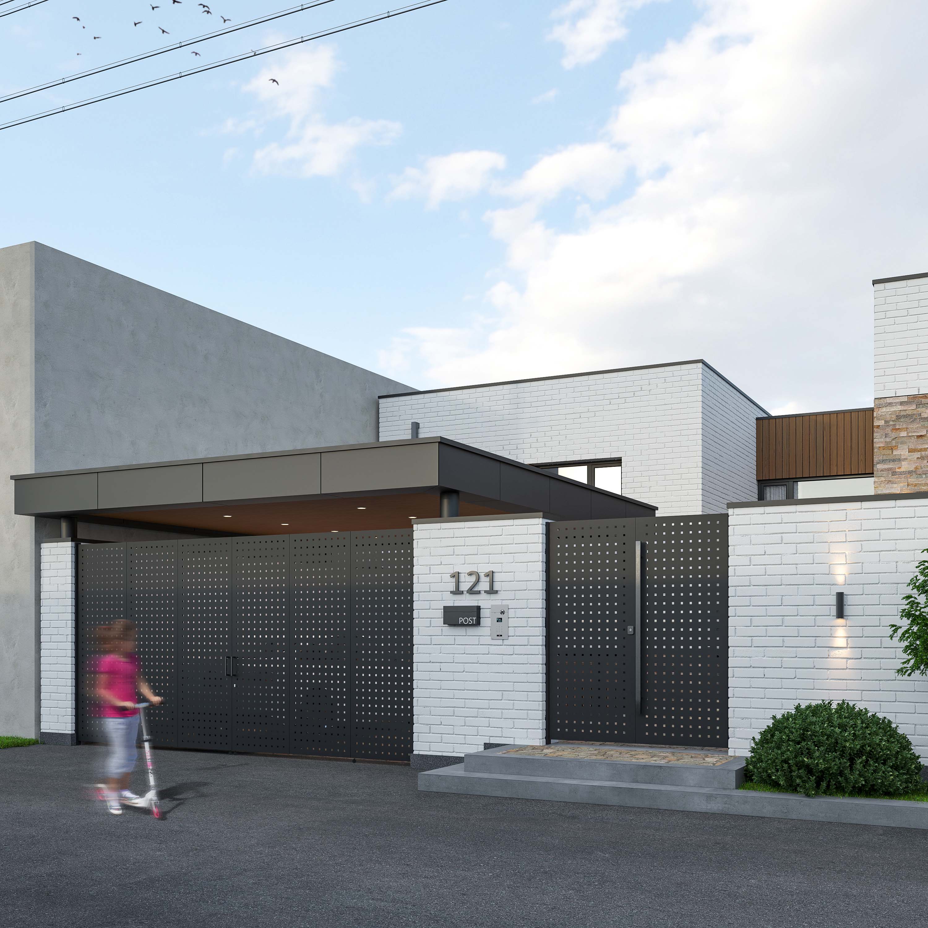Ushbu turar joy binosini Toshkent shahri uchun loyihaladik.Konsepsiyamizda hovli ichki va tashqi qismlarga ajratilgan.Birinchi qavatda asosan aktiv zonalardan iborat bo‘lib yopiq basseyn ham undan o‘rin olgan. Ikkinchi qavat esa passiv hududlardan tashkil topgan bo‘lib xonadon sohiblari uchun issiq kunlarda qulay dam olish makonini yaratish va go‘zal manzaradan bahramand bolish uchun tom qismida va ikkinchi qavatlarda ochiq terrasalar loyihalangan. Hovlilarda tabiiy o‘simliklar bo‘lishiga katta urg‘u berildi